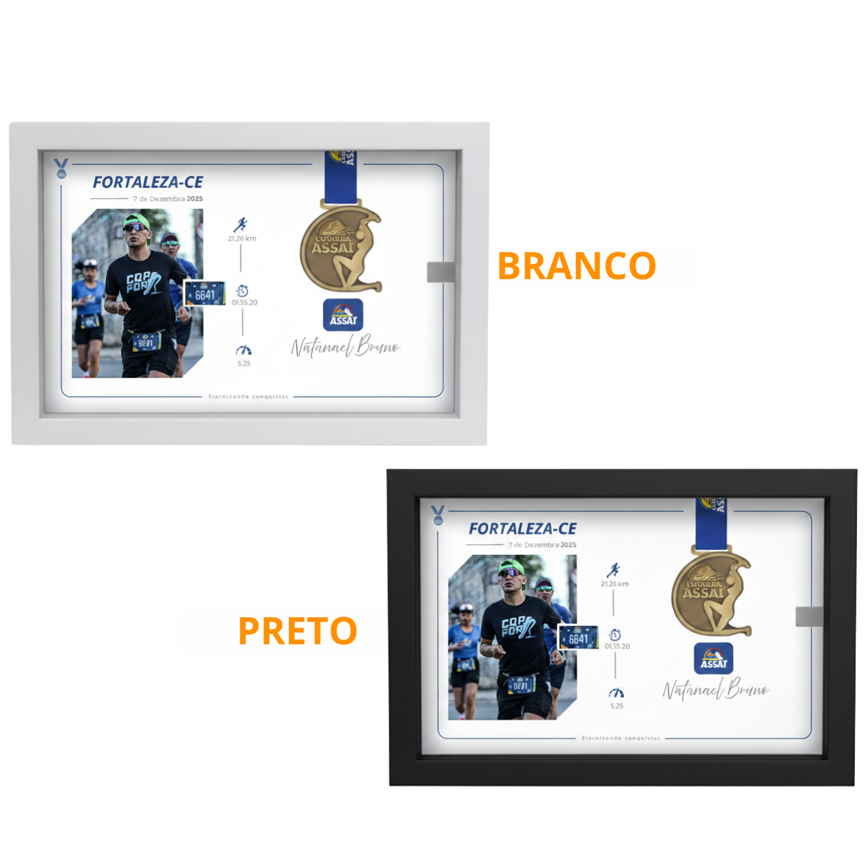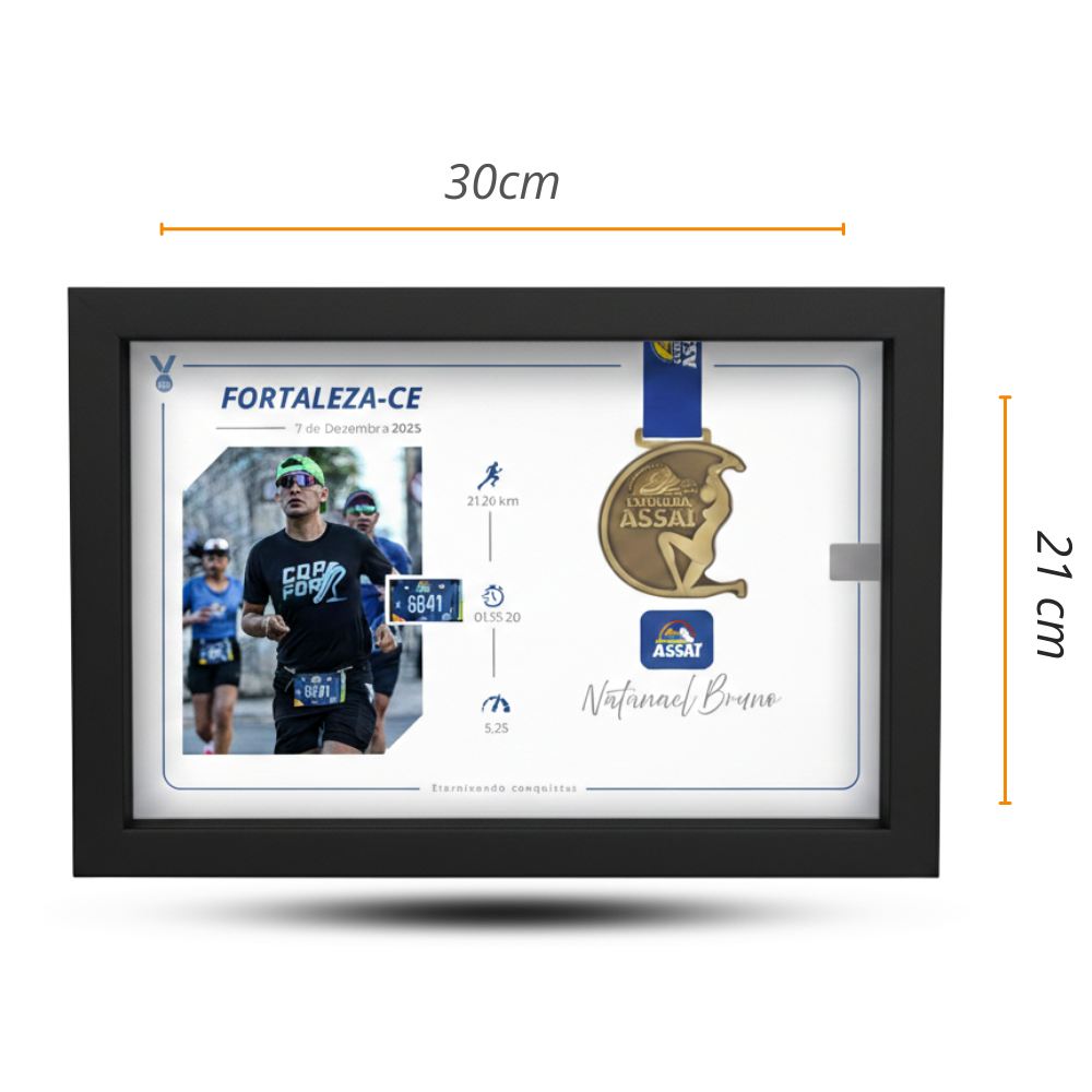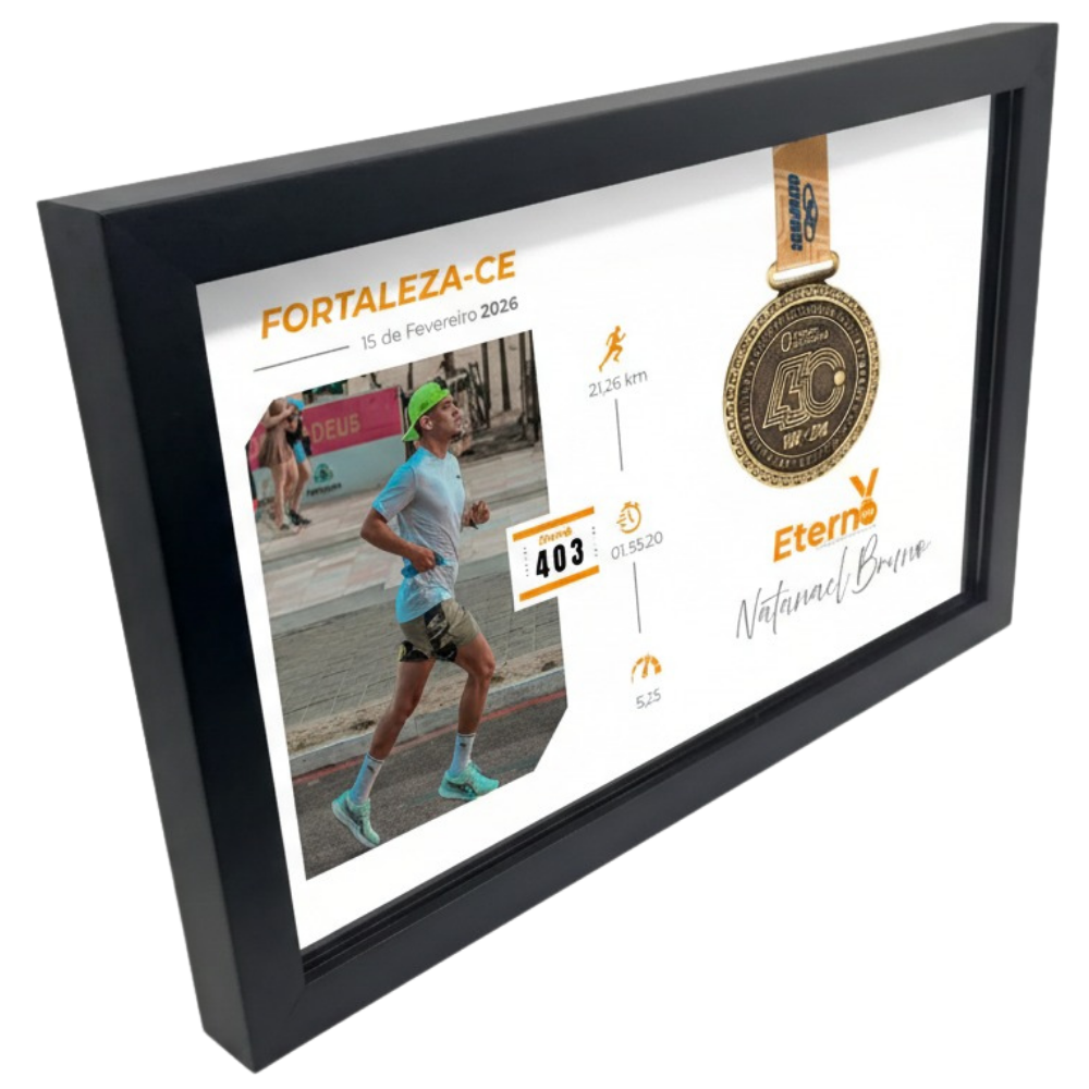 “Foi a melhor forma que encontrei para eternizar minha primeira corrida. O espaço para colocar a medalha facilita muito e o resultado final ficou sofisticado demais. Recomendo para qualquer corredor.”